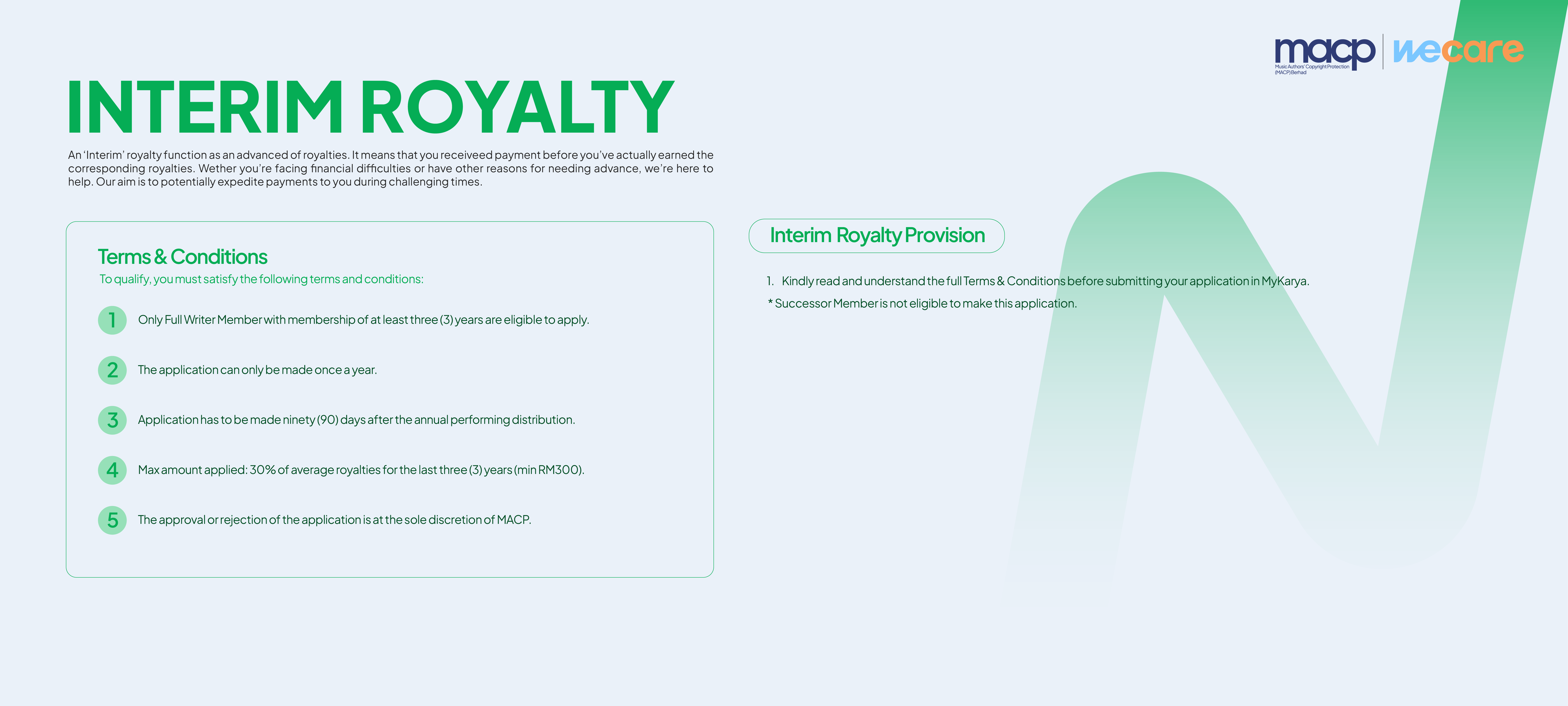 - For foreign writers, songwriters should reside in Malaysia for five (5) years prior to the application and have a local residence address.